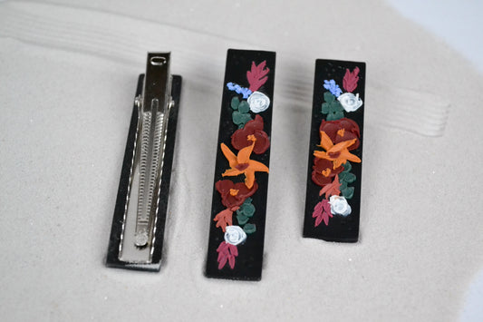 Haarspange in Schwarz mit Herbstblumen
