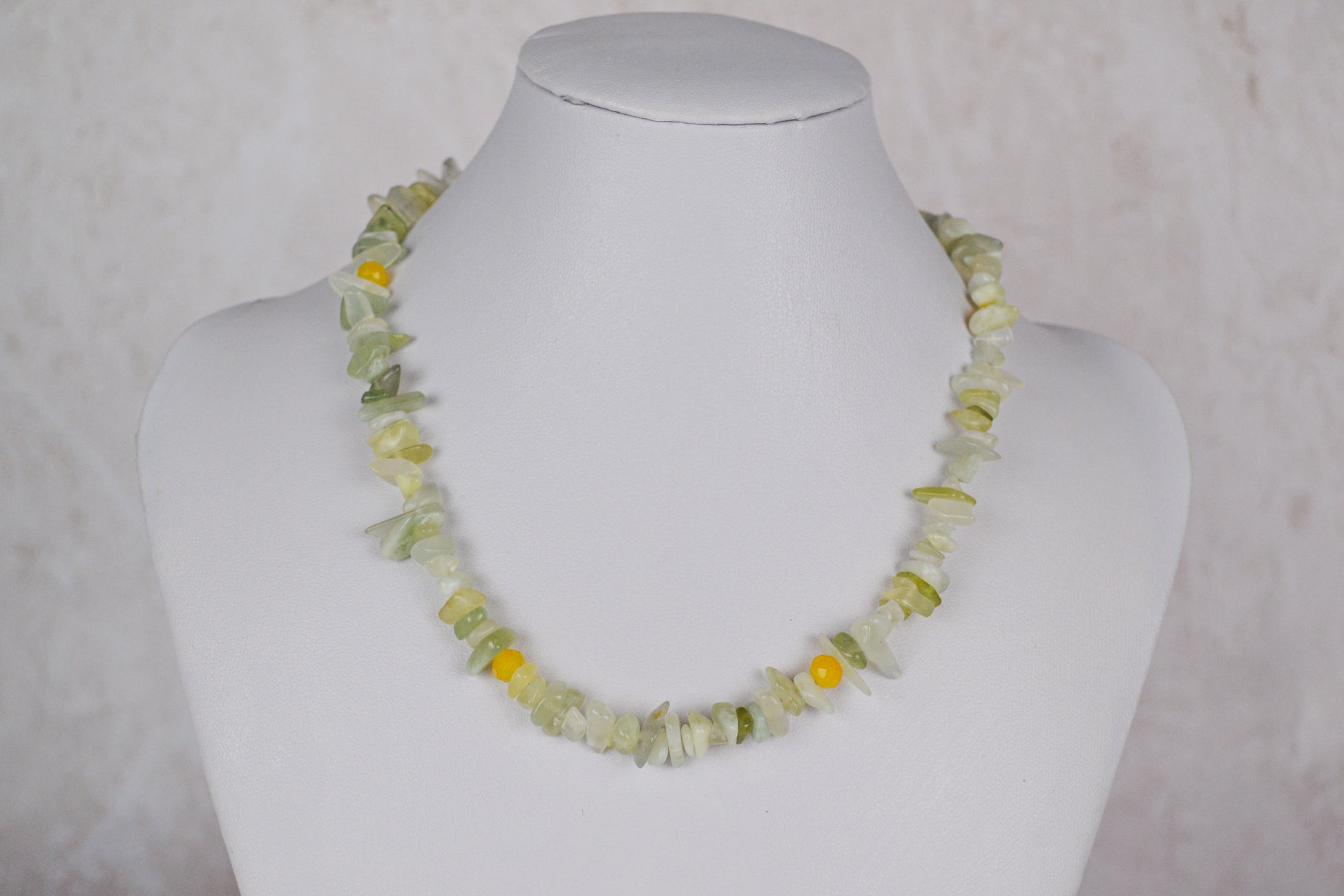 This version of Gaia is made of serpentine chips and four yellow polished glass beads to make Gaia a real eye-catcher.